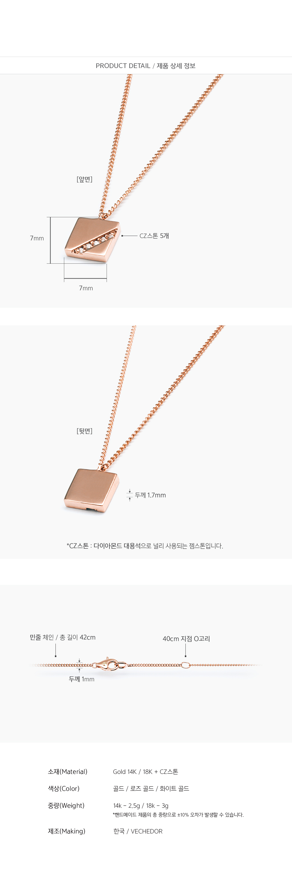 14k 18k 크레센도 스퀘어 목걸이