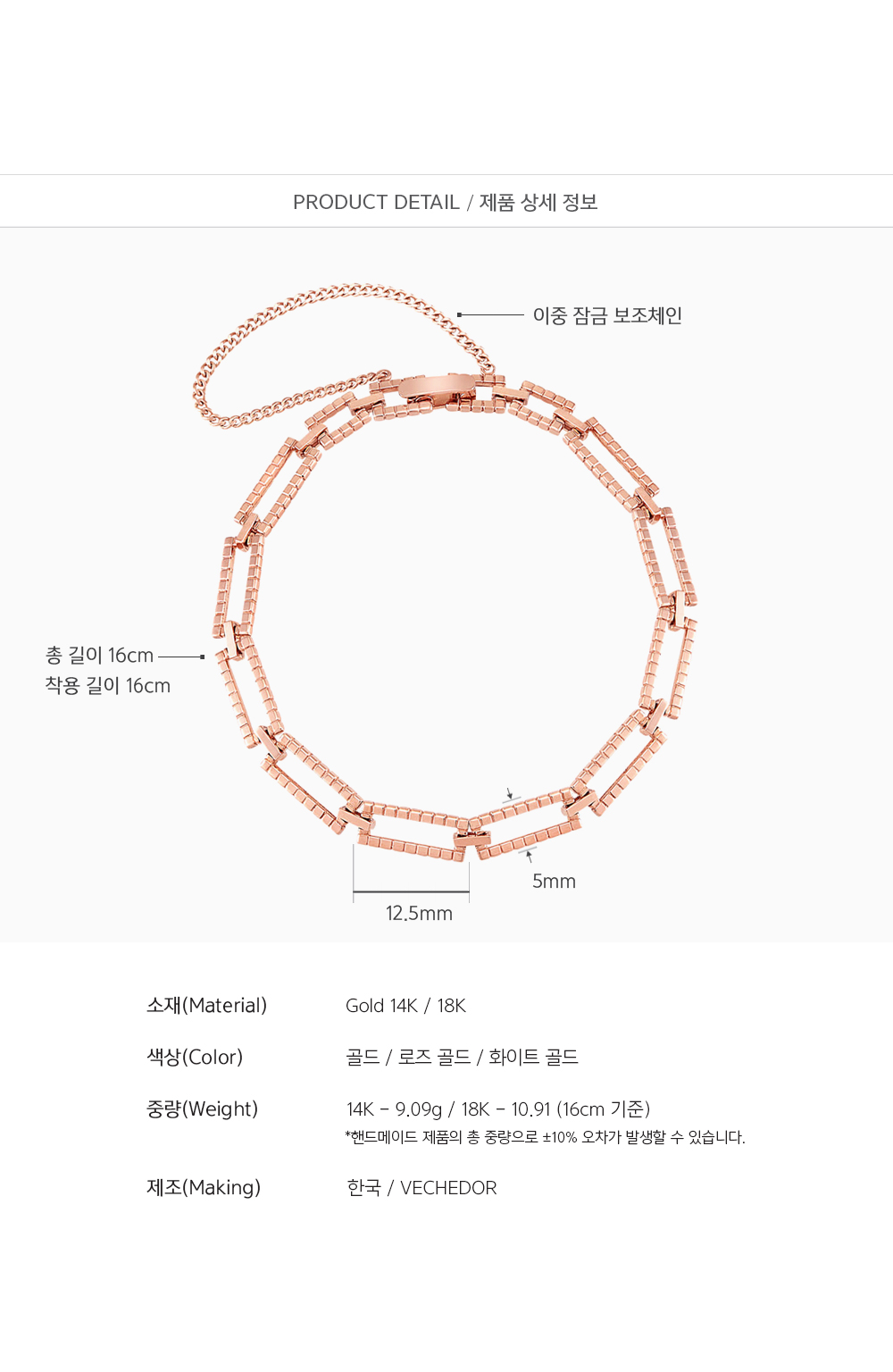14k 18k 엔티어 사각 파이프 뱅글 팔찌